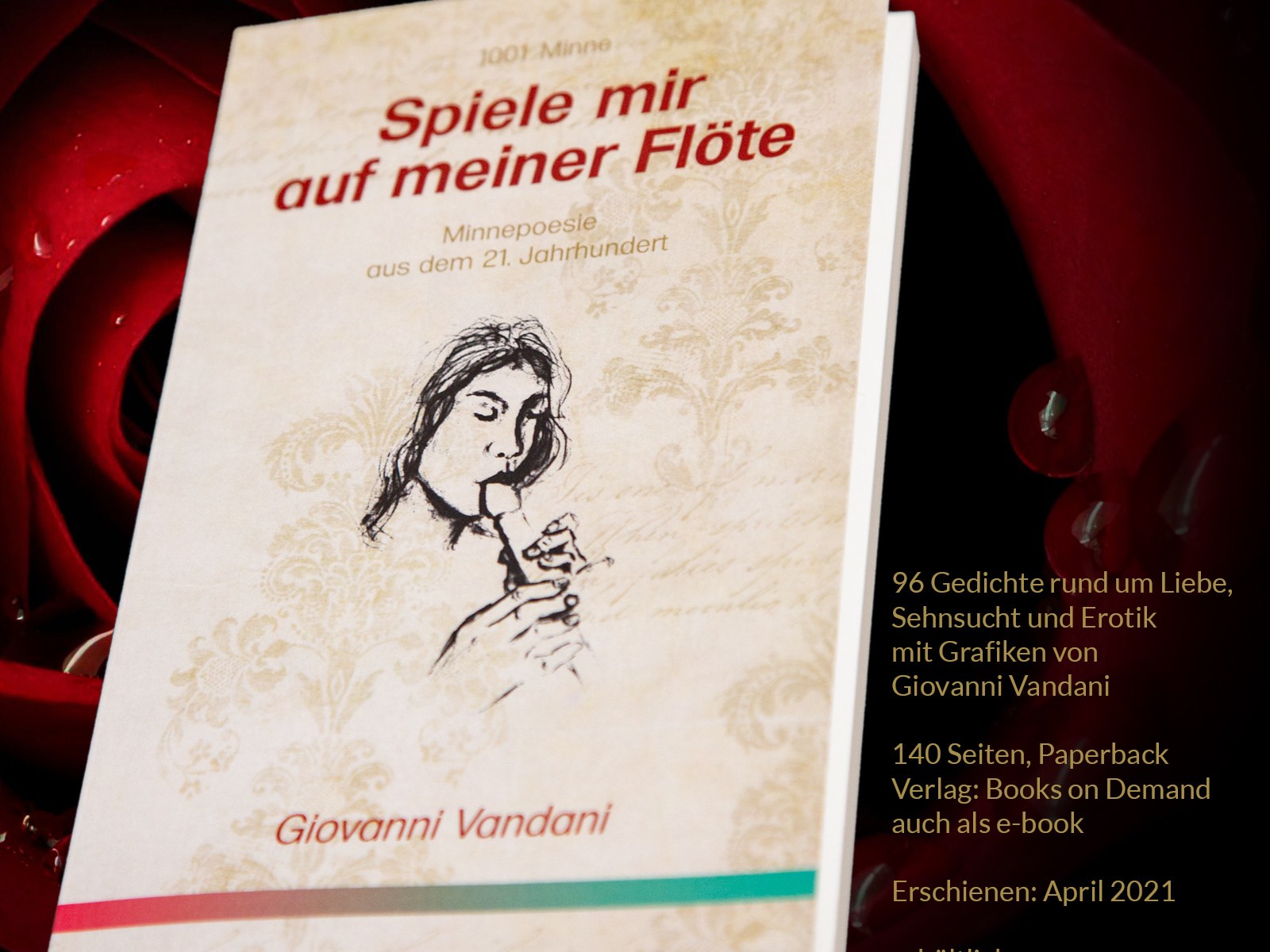 Ab sofort ist das Debütwerk von Giovanni Vandani, der Gedichteband "Spiele mir auf meiner Flöte". auf allen gängigen Buchhandelsplattformen sowohl in analog haptischer Buchform als auch als e-Book erhältlich.